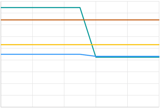 Another component of the timeline would show financing over time, i.e. funding available at any given moment minus the net implementation cost (i.e. utility incentives and government tax breaks are deducted) of the EEMs underway at that moment. This could be two separate graphs: one showing EEMs that are paid for out of a constantly modulating CapEx budget; the other showing EEMs that are paid for out of a fixed annual O&M, or operating expenses (“OpEx”), budget. Cost savings associated with the EEMs would be factored in, along with other relevant factors such as inflation, interest rates, compliance penalties, etc. And to illustrate why certain EEMs are practically feasible but not recommended for implementation in this particular building, alternate financing timelines can be shown – for example, a timeline showing that the payback period for window replacement is excessive.