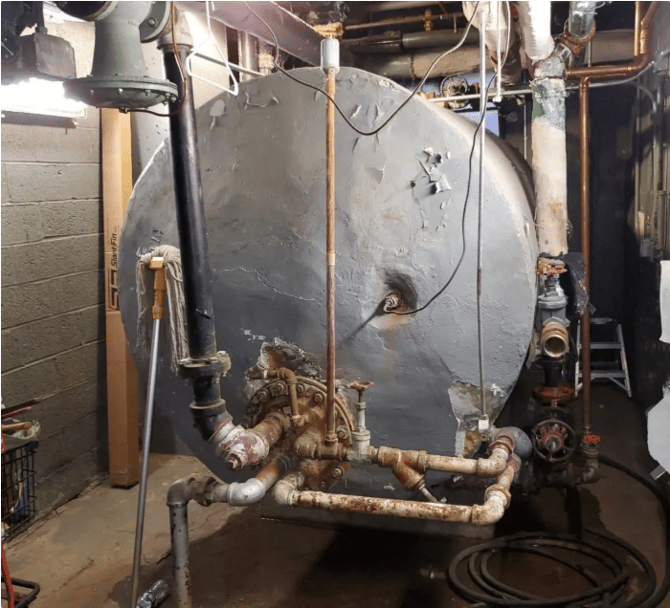 NOTE: To improve efficiency, the condensate water and remaining heat energy can be recovered. Whenever hot condensate is discharged into a zone of lower pressure it can flash back into steam, which can also be recovered – although steam flashing typically does not happen in residential applications.