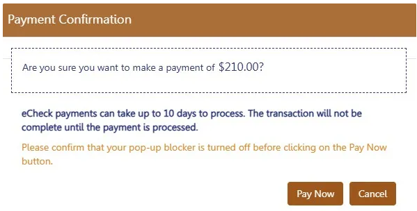 - For payments by eCheck, the status of the transaction will change to Pending Payment Verification. The
