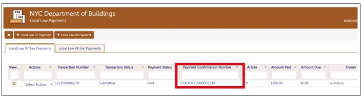 Confirmation Number to be entered in the BEAM Reporting Portal. If a fee exempt owner type is selected, the NYC