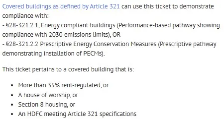 2030 emissions limits), OR §28-321.2.2 Prescriptive pathway via Energy Conservation Measures (PECMs). This guide pertains to owners of Article 321 buildings opting for the Prescriptive pathway.