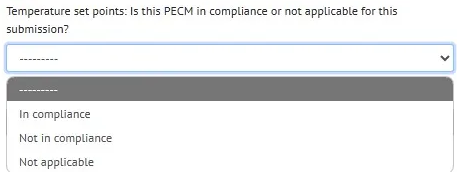 - Nine of the thirteen PECMs require an attestation only. For each of these PECMs, indicate In compliance, Not in compliance or Not applicable.