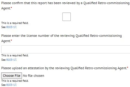 - Uploading supporting documentation for your property use type and gross floor area (GFA) and confirming Qualified retro-commissioning (RCx) agent attestation.