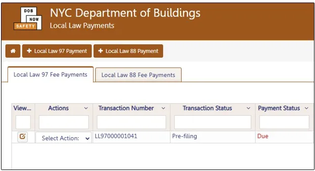 - From the Energy sub-menu, select Local Law 97/88 Filing Fee Payments.